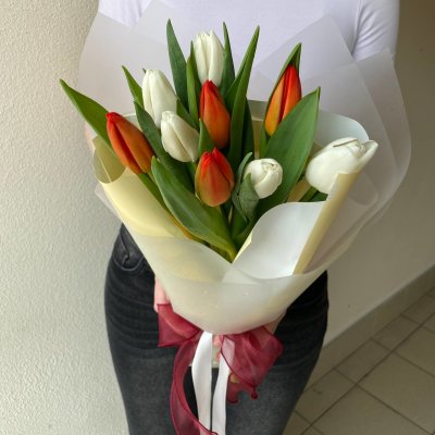 Тюльпаны символизируют весну, нежность и женственность, а белый цвет добавляет композиции чистоту и свежесть. Этот букет станет прекрасным подарком дл