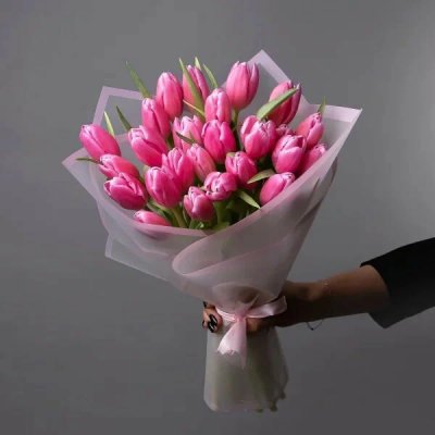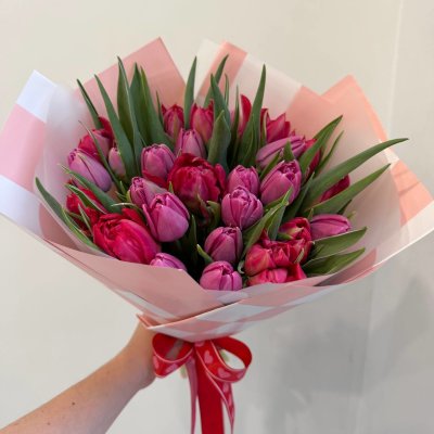 Букет из 25 пионовидных тюльпанов в стильной упаковке