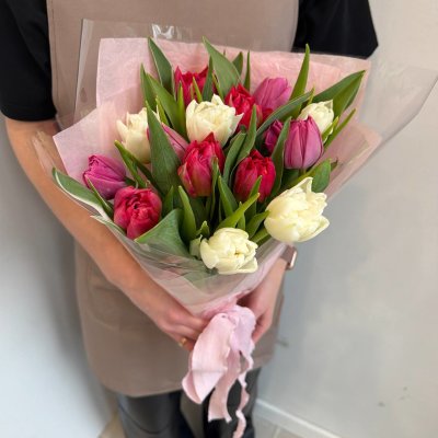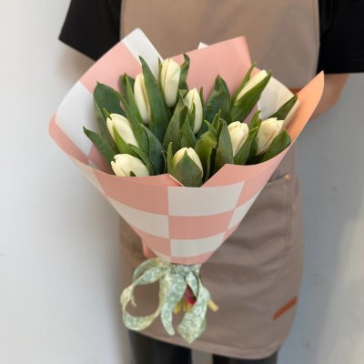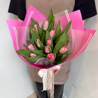 Тюльпаны - это символ любви и нежности, поэтому такой букет отлично подойдет для проявления ваших чувств к близкому человеку. Бело-розовая гамма прида