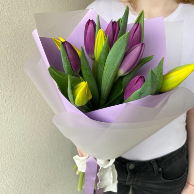 Желтые тюльпаны символизируют радость, счастье и весну. А белая упаковка добавит особой изысканности и элегантности вашему букету. Такой подарок точно