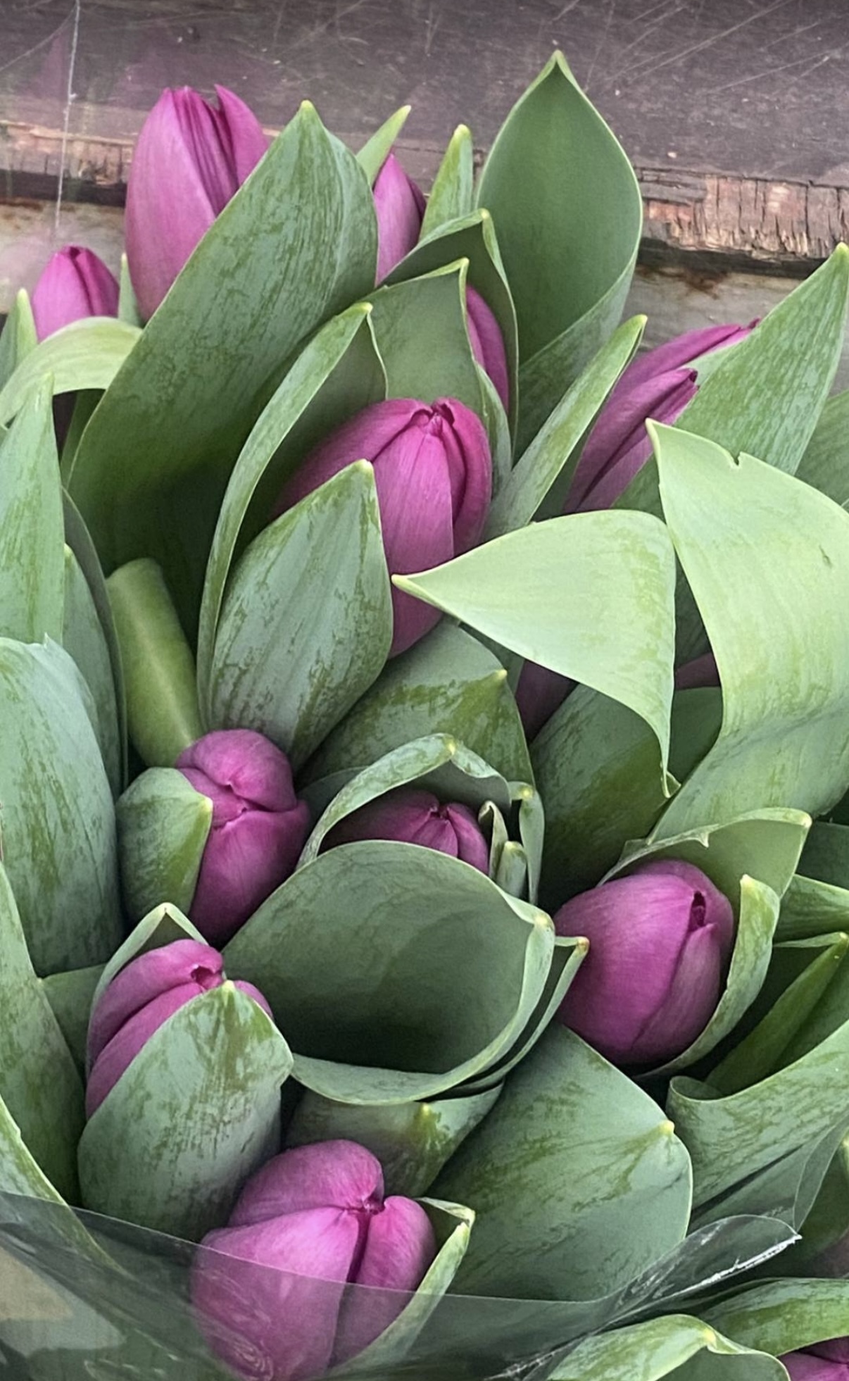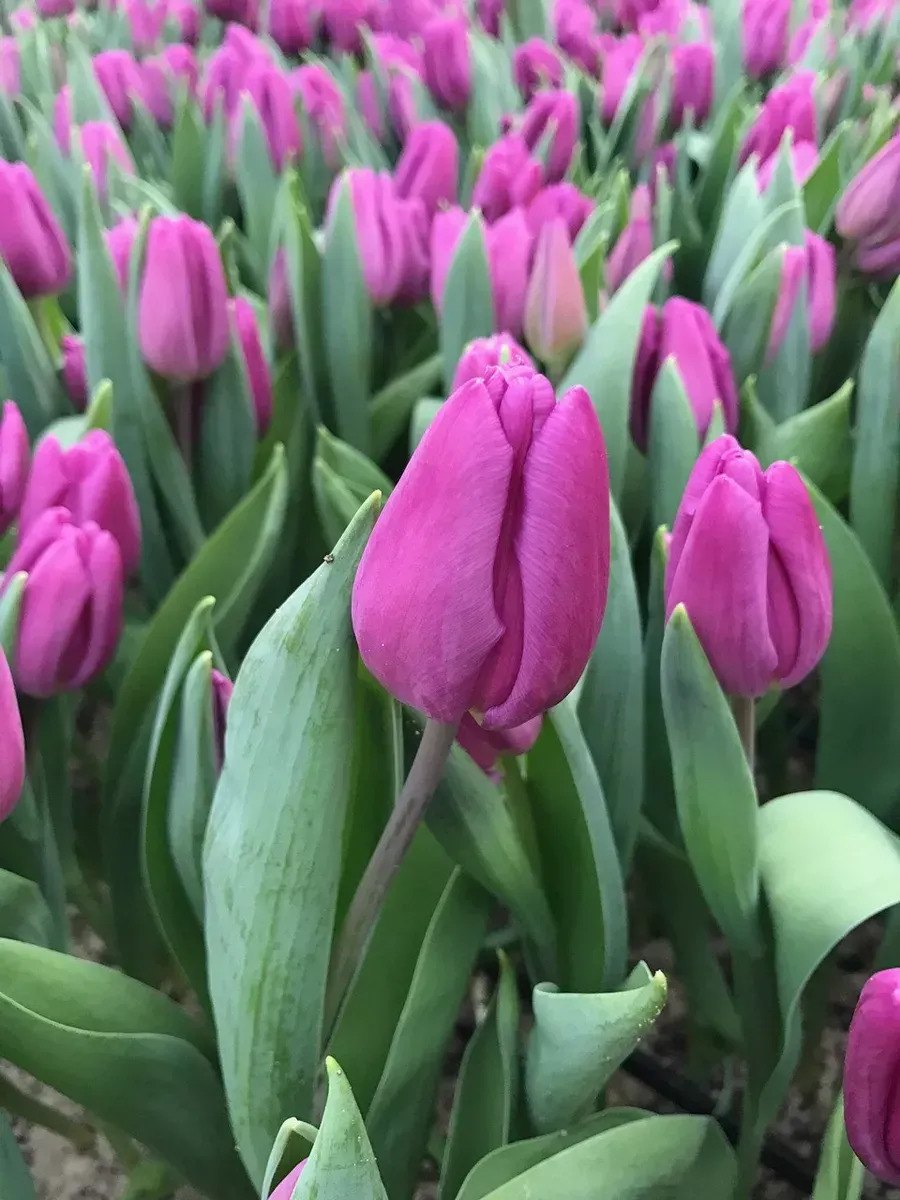 Плотный хрустящий фиолетовый тюльпан с крупным листом, отличается плотностью бутона, не раскрывается на полную силу остается аккуратным "стаканчиком".